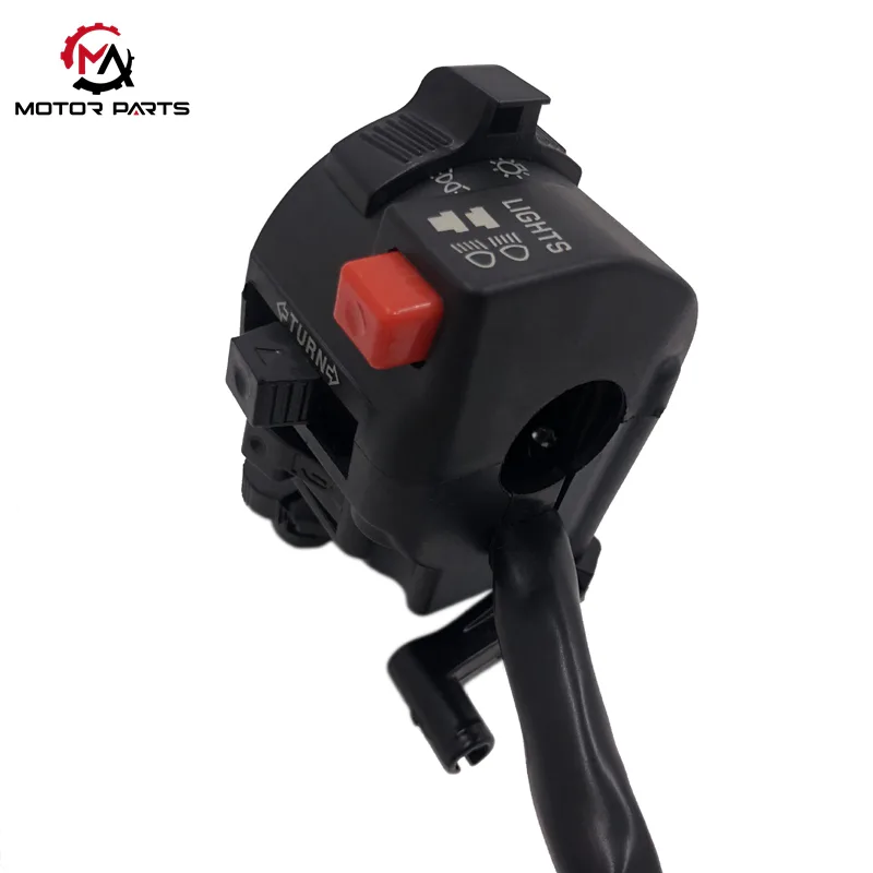 Bahagian kiri dilengkapi dengan suis pautan tuas brek, yang secara automatik memotong litar permulaan apabila brek hadapan ditekan, membentuk mekanisme interlock keselamatan. Bersama dengan brek kanan, ia membina sistem perlindungan dwi litar untuk meningkatkan keselamatan penunggangan.